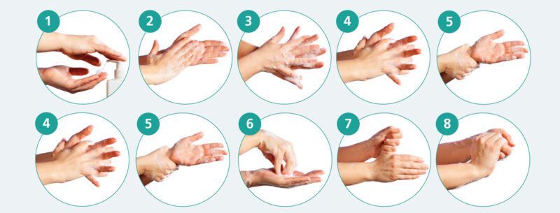 - Wash your hands thoroughly with soap and water for 20 seconds, especially between fingers and palms of hands.