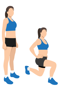 - Walking (perform a series of lunges whilst moving forwards – as shown above)