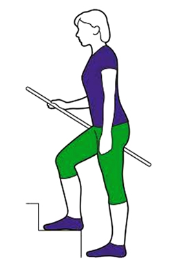 Using the bottom of your stairs, step up with your operated leg followed by your un-operated leg.